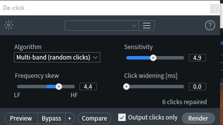 Note: Always start with a light processing preset within the de-clicker and go from there.
