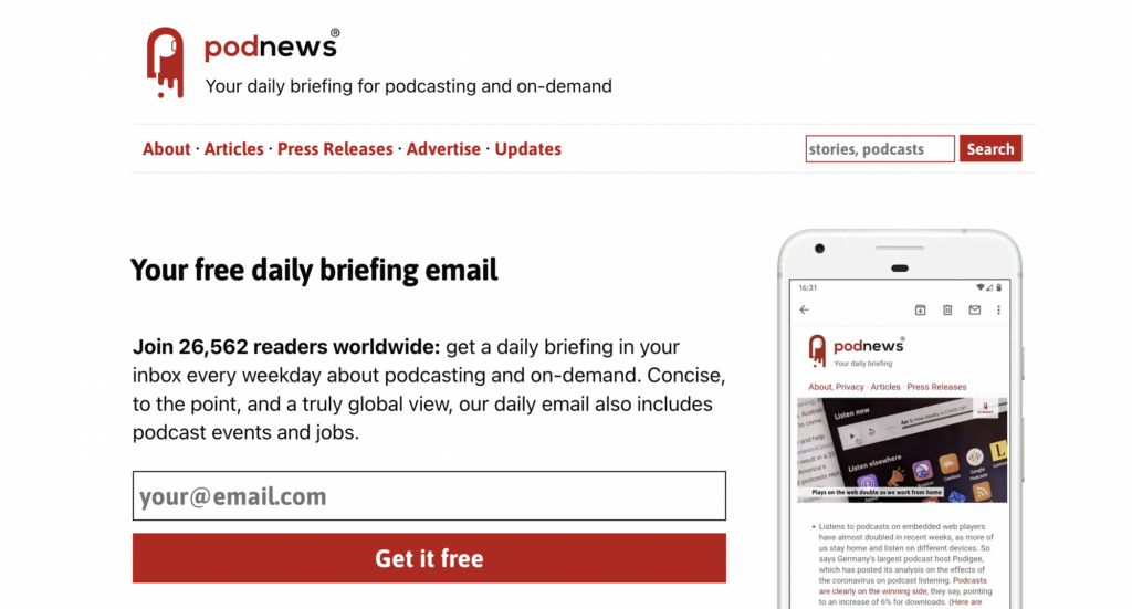 And believe it or not, you can even subscribe to a daily news podcast for podcasters, courtesy of Podnews.